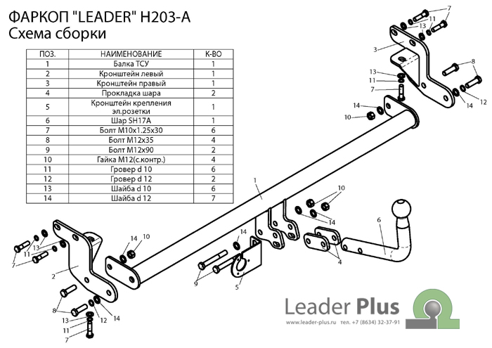 Фаркоп «Leader» легко устанавливается на штатные места автомобиля, предусмотренные заводом-изготовителем,без сверления дополнительных отверстий в кузове. Снятия и подрезки бампера не требуется.